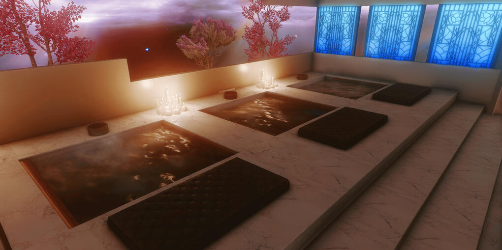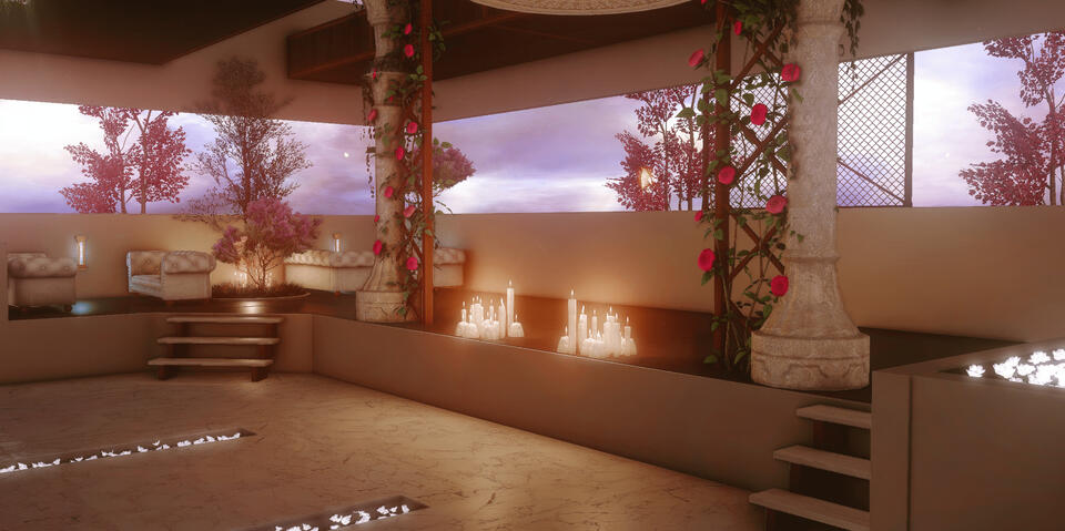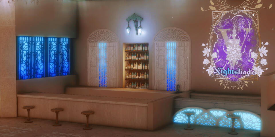 Nestled in a realm between dreams and memory, Nightshade is an ethereal nightclub and bathhouse inspired by Sleep Token’s hauntingly emotive album. The space pulses with dim, iridescent light and ambient echoes of melodic worship, evoking both sacred intimacy and deep yearning. Steam drifts through shadowed corridors as veiled figures dance and cleanse beneath moonlit ceilings, lost in a timeless trance. Here, vulnerability becomes ritual, and every whispered lyric seeps into marble and mist—a sanctuary where pleasure, grief, and devotion blur into one reverent experience.